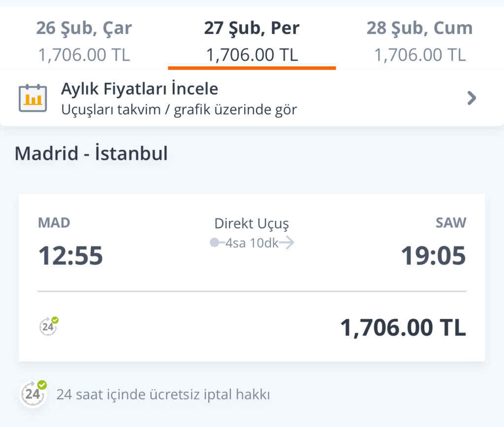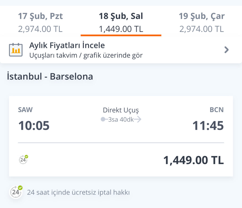- Kampanyada fiyatlar çok hızlı değiştiği için paylaştığım tarihlerin fiyatları da hızlı değişebilir. Farklı tarihlerde de aynı fiyatları bulabilirsiniz. Aylık fiyat görünümünden veya belirli bir tarih seçiliyken 1 hafta öncesi-sonrası tarihleri ekranı sağa sola kaydırarak görüntüleyebilirsiniz.