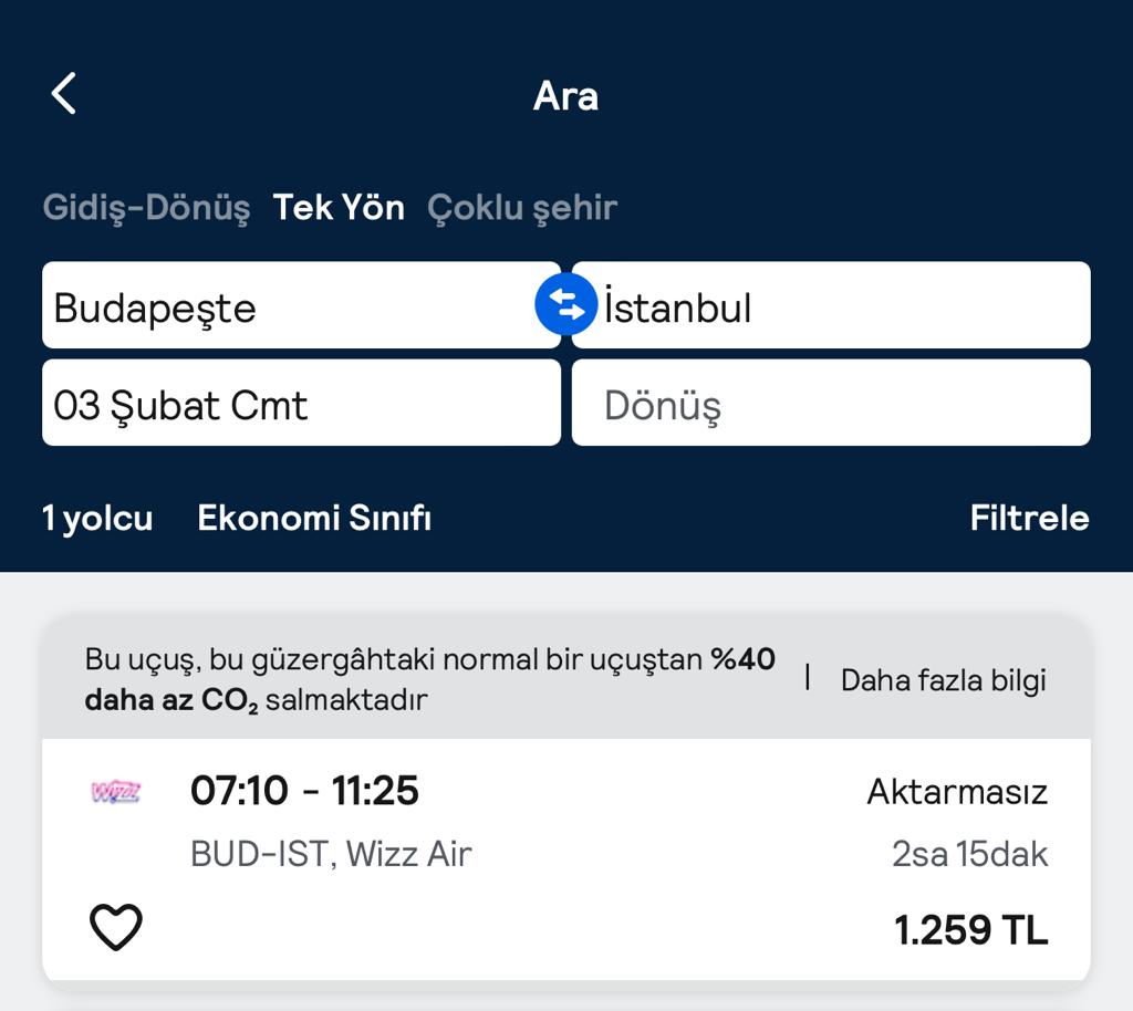 • Budapeşte – İstanbul: 3 Şubat’ta WizzAir ile 1259 TL. Bu bileti Skyscanner’da aratabilir ya da doğrudan havayolu firmasının sitesinden alabilirsiniz.