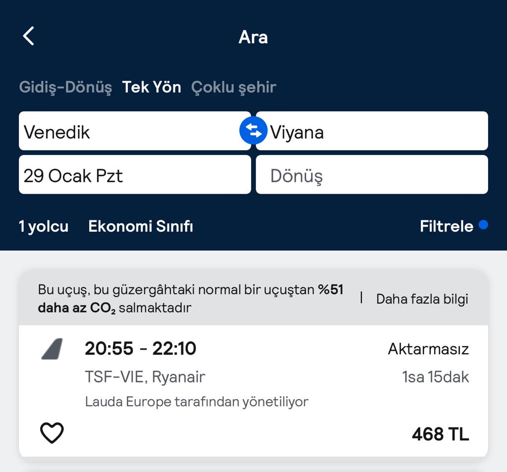 • Venedik – Viyana: 29 Ocak’ta Ryanair ile 468 TL. Bu bileti Skyscanner’da aratabilir ya da doğrudan havayolu firmasının sitesinden alabilirsiniz.