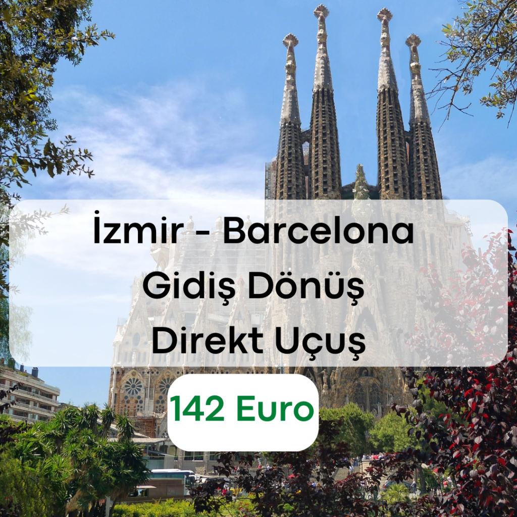 İzmir’den direkt uçuşlar ile Avrupa’nın en gözde yerlerinden Barcelona’ya 142 Euro’ya uçabilirsiniz. Üstelik bu biletlere 8 kg kabin bagajı ve 30 kg uçak altı bagaj hakkı da dahil. Ayrıca İzmir – Barcelona uçuşu için farklı alternatif tarih seçeneklerini sizler için sıraladık. İzmir’den direkt Barcelona uçuşu için uygun bir fiyat olduğunu söyleyebiliriz.
