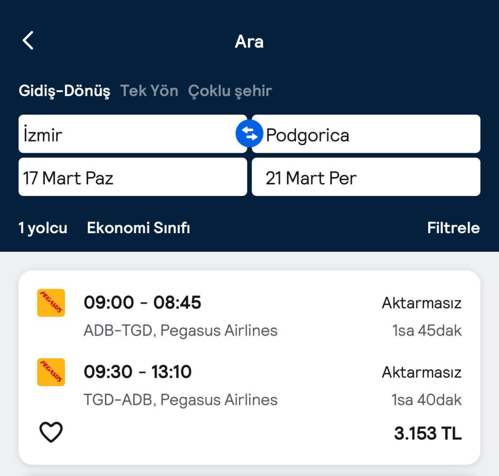 İzmir – Karadağ Gidiş Dönüş Uçak Bileti Önerisi 3153 TL
